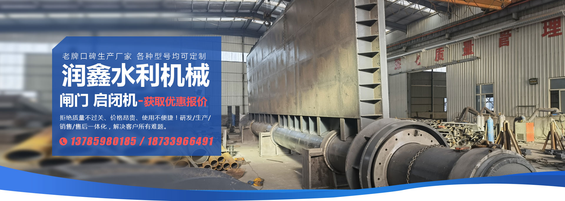 新河县润鑫水利机械厂是制造、金属结构、铸造、机加工、热处理、总装为一体的综合性企业。 我厂主导产品有: 1.螺杆式启闭机分为:手动、电动、电装、手电两用、全封闭式、直联式、斜拉式、单吊点及双吊点式,从0.3吨-100吨多种规格型号。 2.卷扬式启闭机分为:台车式、移动式、弧门式、(QPQ、QPK、QPT、QHQ)从5T--250T单吊点及双吊点等多种型号规格。 3.清污设备系列分为:不锈钢细格栅栅条间隙、拦污栅、齿式回转格栅除污机、格栅回转式除污机、GLGS高链式格链除污机、YZL型螺旋压榨机、XGS旋转式格栅除污机、HZG回转式格栅除污机、输送机。 4.铸铁(复合)闸门:适用于水头比较深的水域,···查看详情>>